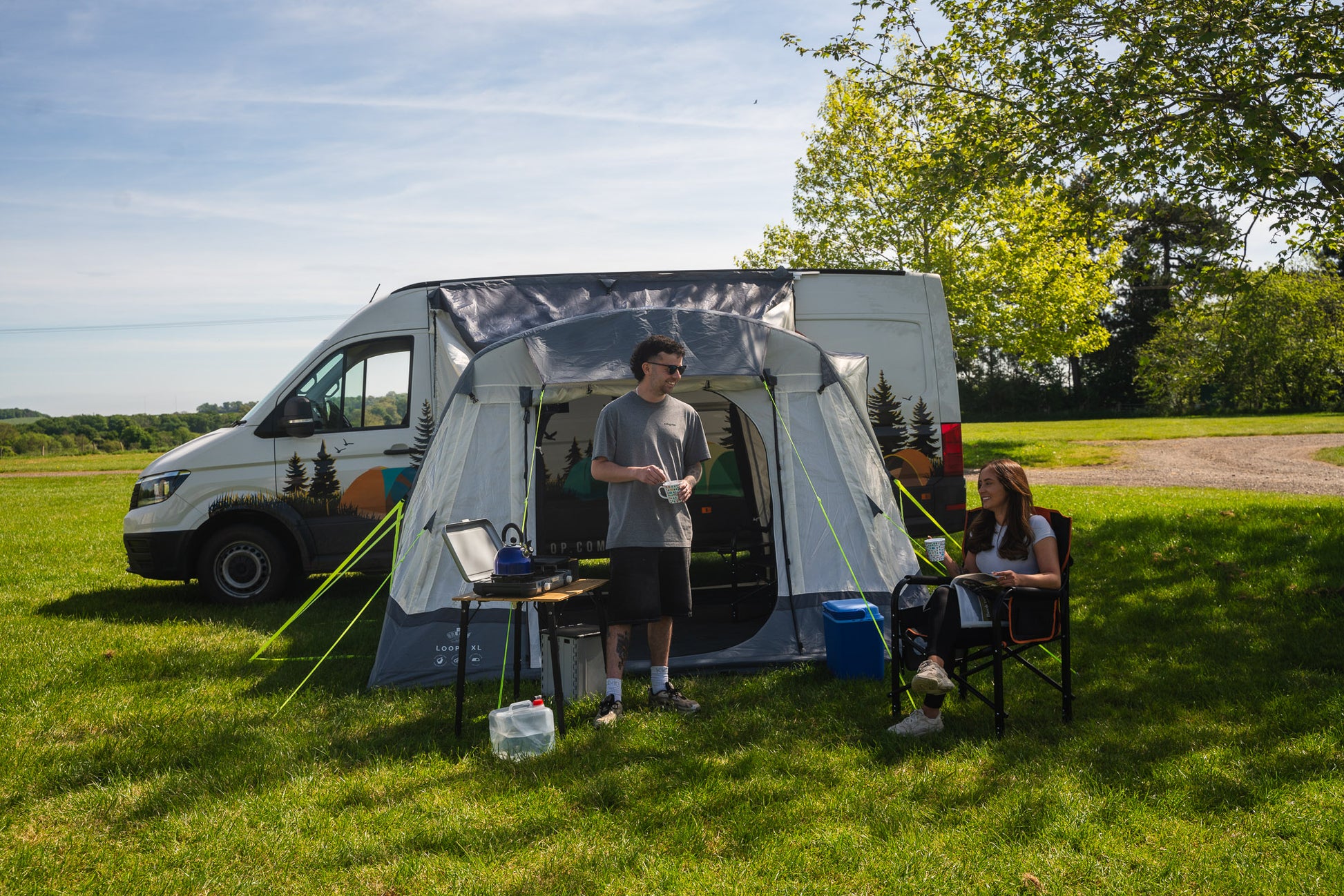 What makes the Loopo Breeze® V2 Tall Tunnel Motorhome Awning perfect for any van-lifer is its versatility to be an awning exclusively just for extra living or storage space during the day and a sleeping area at night with a removable darkened two-berth inner bedroom (purchased separately).